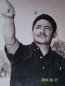 Gracias a Pedro Rueda, avezado lector de este espacio, consigo una foto más de esta serie de Bostelmann, ¡qué va! Como las otras, no se tiene cierto de dónde pudieron salir, es decir, Rueda me cuenta que la consiguió en la red y desde entonces no la ha vuelto a ver. Para mí es la primera vez. Es un retrato de un serio Solís guasón; sentado calando el golpe con una mirada quizá perdida. Esta vez no está de frente, son los tres cuartos su perfil junto con el puño cubierto y su pelo envaselinado; la esclava y el reloj: amo de su tiempo.