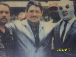 Aquí en la SOLISMANÍA colgué hace meses unas fotos que Gabriela Siria (hija de Solís) tomó de otras fotos. Una de esas imágenes era precisamente la del Santo y Solís (con alguien más) a la salida de un juego de beisbol (otra de las pasiones de Javier).